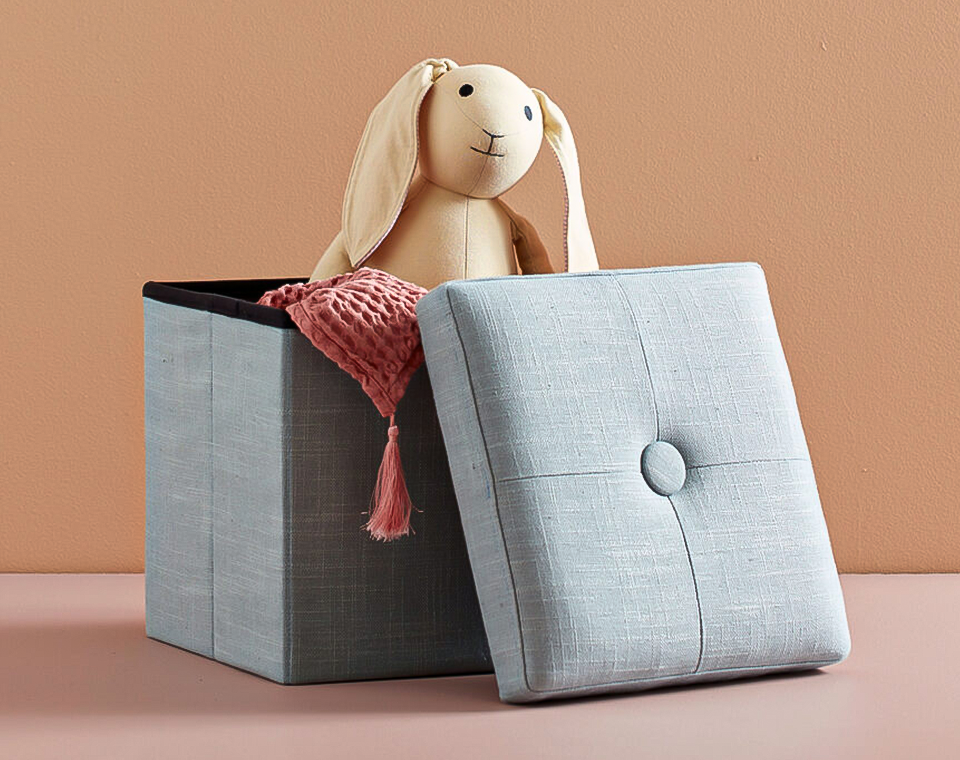 קופסה פרקטית וקלה, המשמשת כקופסת אחסון, הדום וכפריט עיצובי לחדר הילדים שלכם.