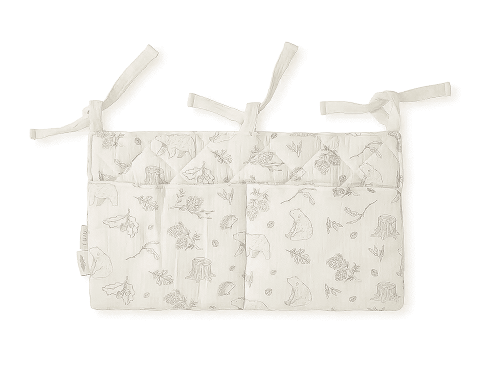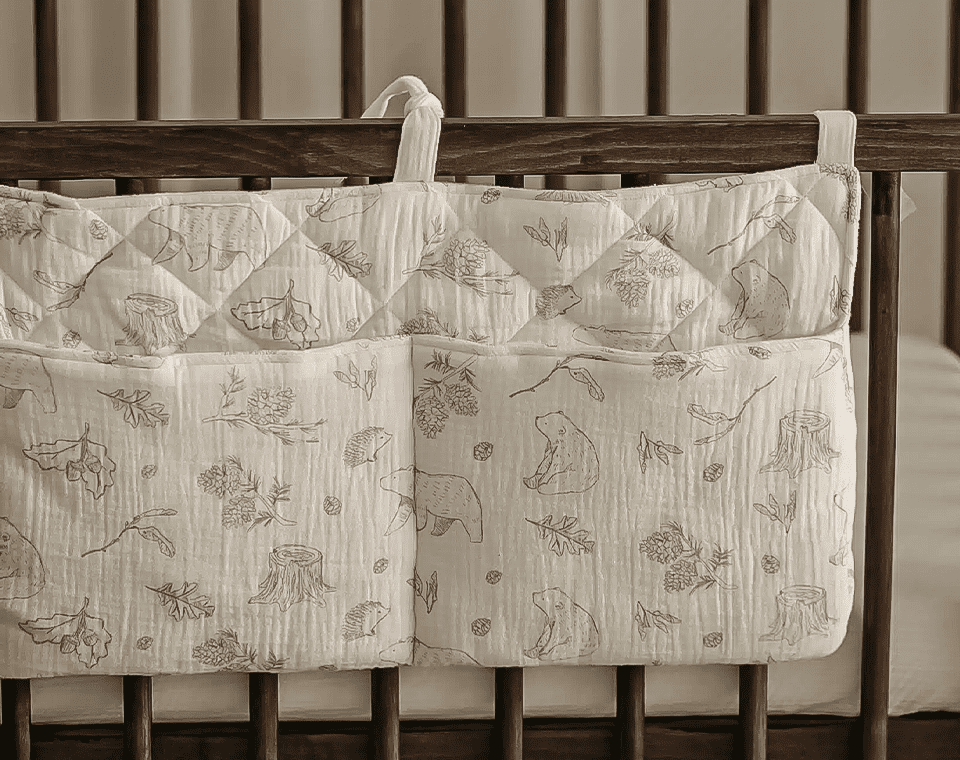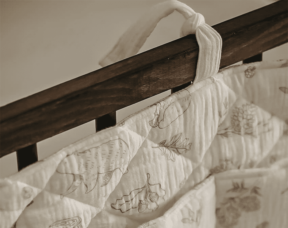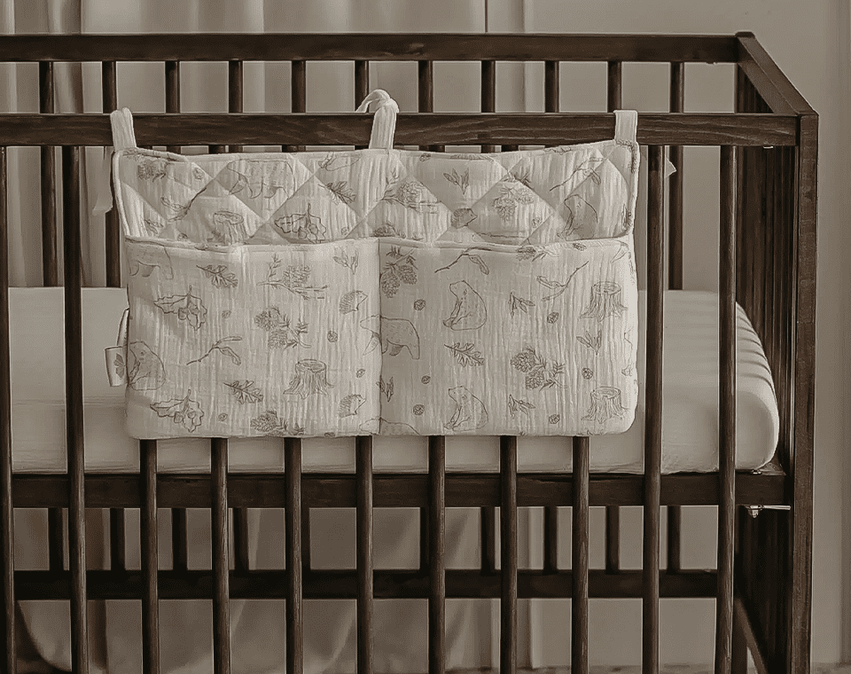 ארגונית למיטה, בעלת חוטי קשירה המאפשרים לתלות אותה בקלות על מיטת התינוק או העריסה.