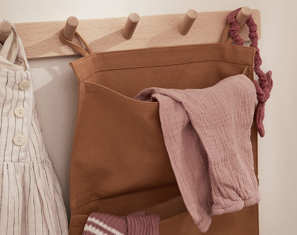 ארגונית תליה מבד קנבס כותנה אורגנית, המתאימה לכל חדר ועוזרת לשמור על הסדר והארגון בביתכם.