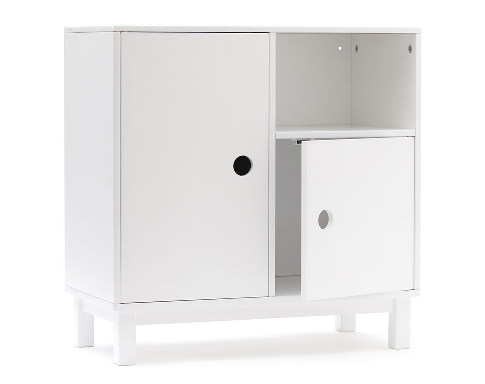 - מאחורי הדלת הגדולה בצד שמאל, יש שני מדפים הניתנים להתאמה חופשית לגובה כדי להתאים לצעצועים ומשחקים.
