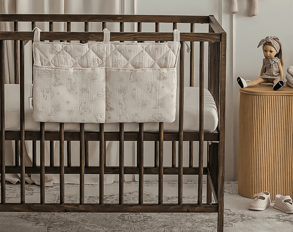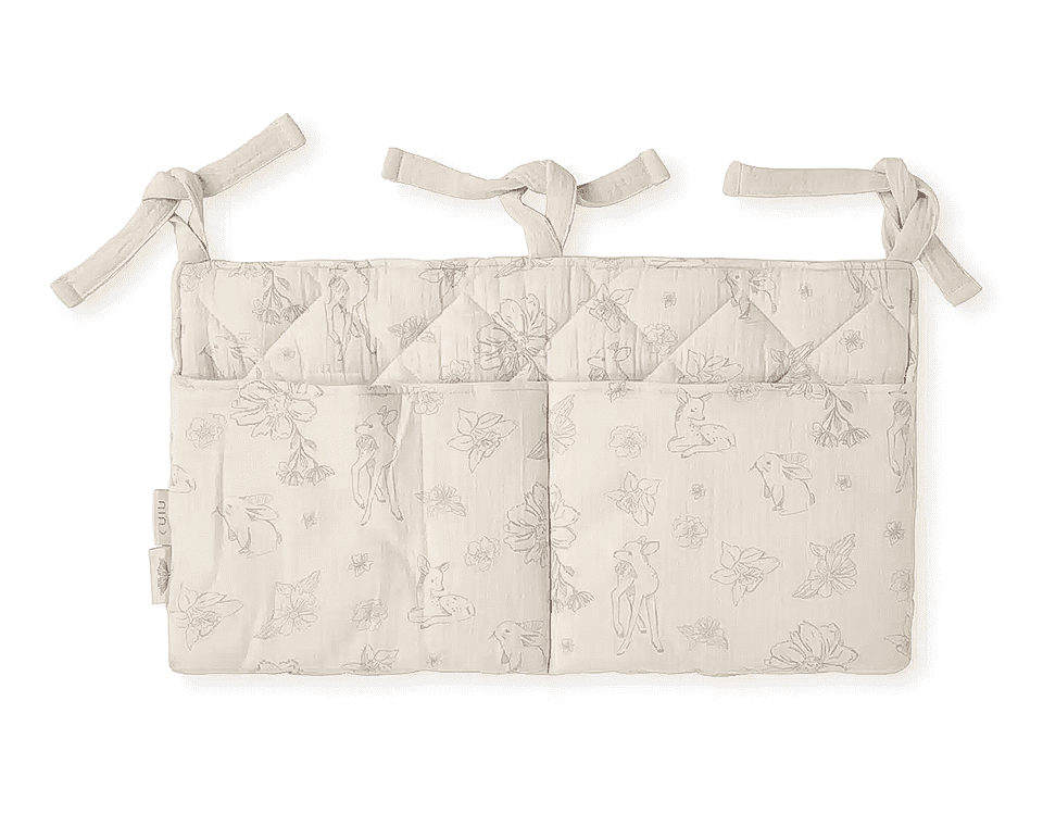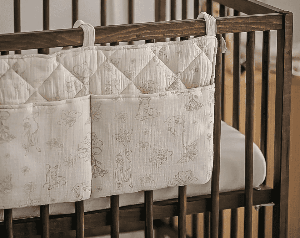 ארגונית למיטה, בעלת חוטי קשירה המאפשרים לתלות אותה בקלות על מיטת התינוק או העריסה.