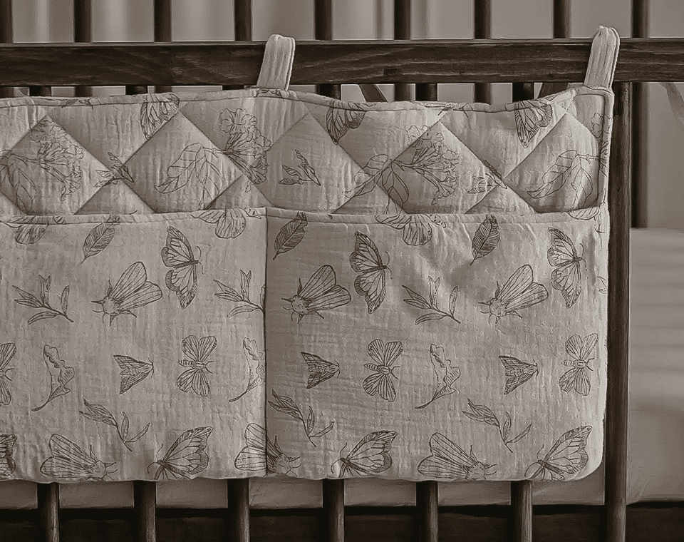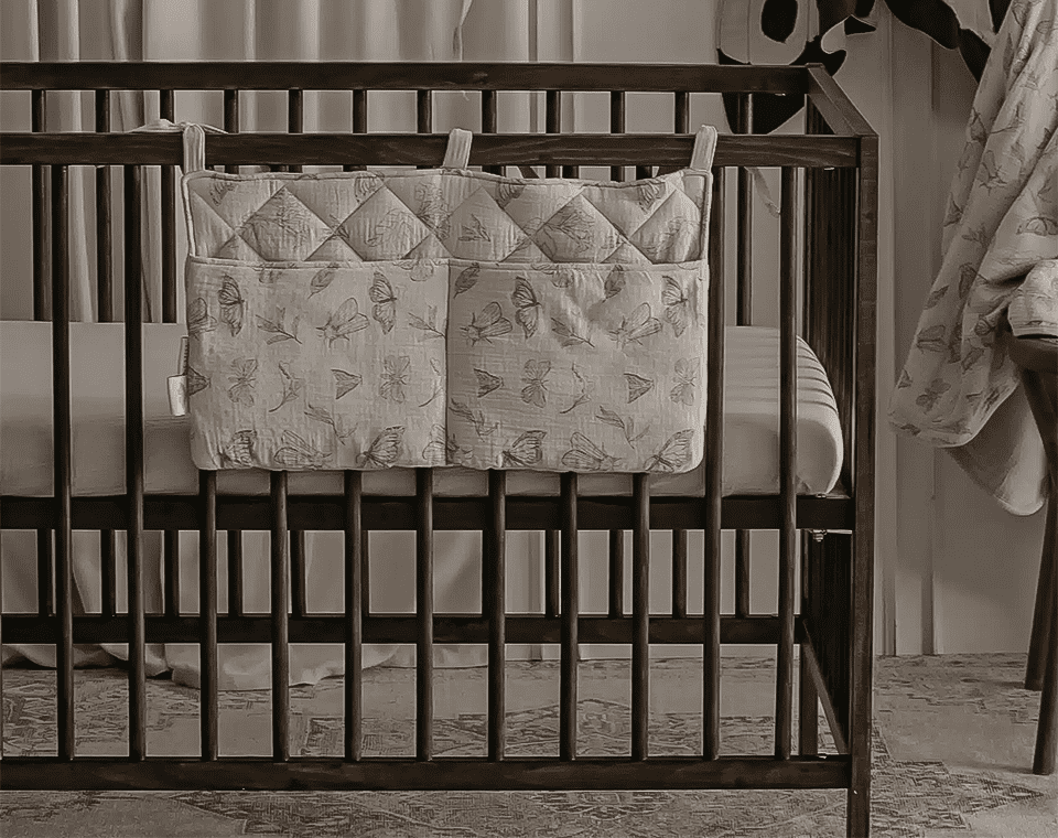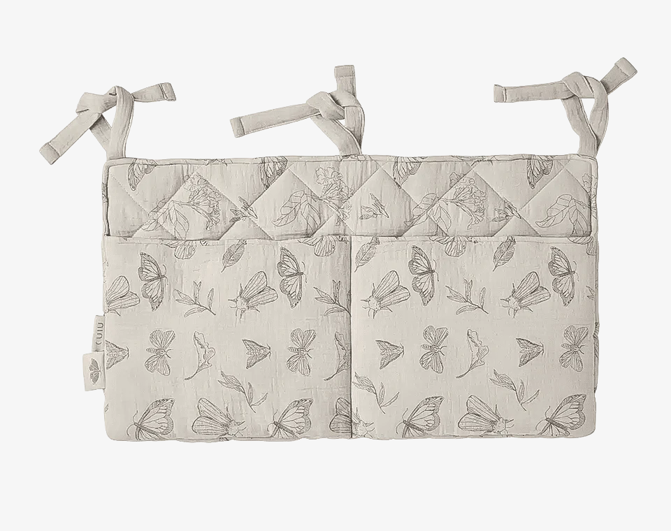 ארגונית למיטה, בעלת חוטי קשירה המאפשרים לתלות אותה בקלות על מיטת התינוק או העריסה.