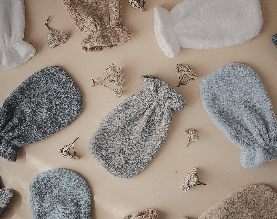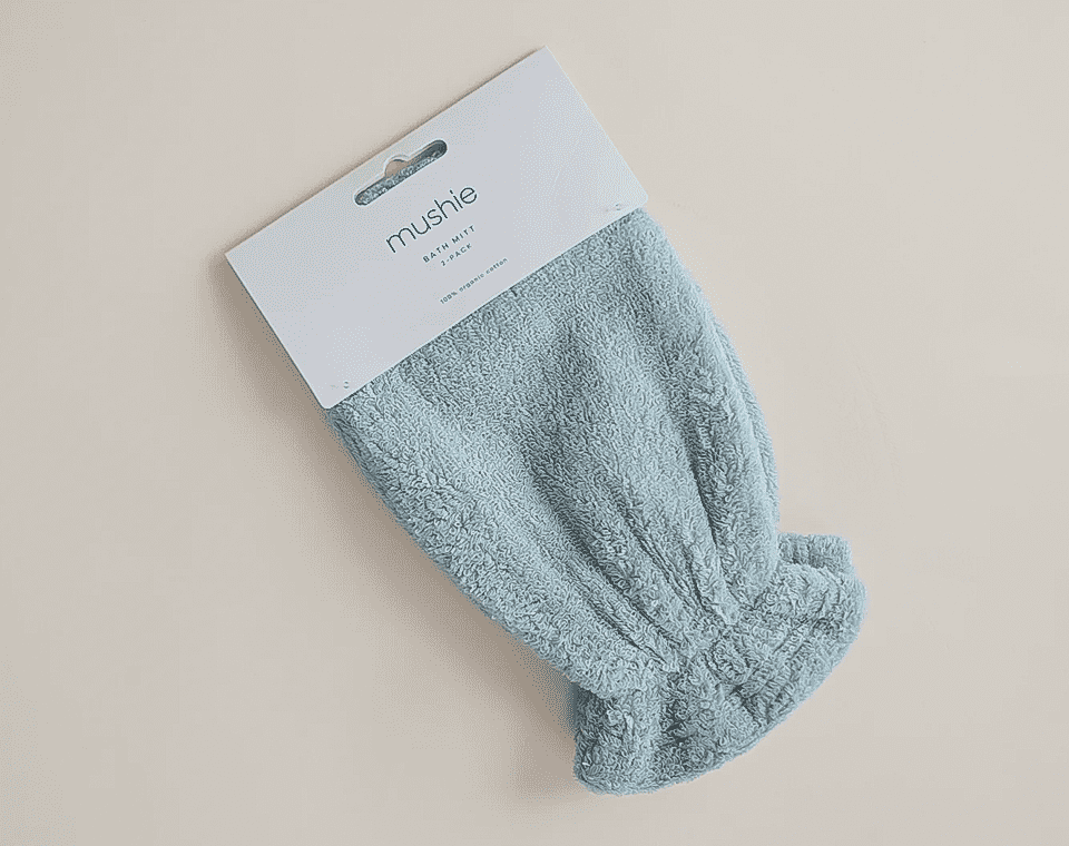 זוג כפפות האמבטיה של מושי נעימות ורכות ומסייעות לניקוי העור העדין והרגיש של הבייבי שלכם.
