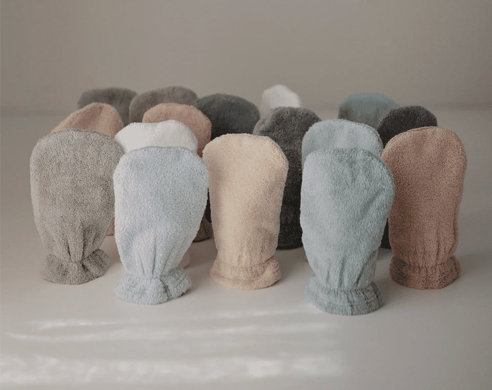 - זוג כפפות האמבטיה של מושי נעימות ורכות ומסייעות לניקוי העור העדין והרגיש של הבייבי שלכם.