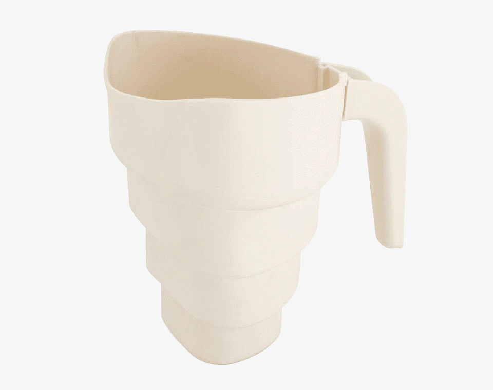 משפך מתקפל לשימוש בזמן האמבטיה, עיצובו הייחודי מאפשר הצמדה לראש התינוק ומונע מהמים להישפך על פניו.