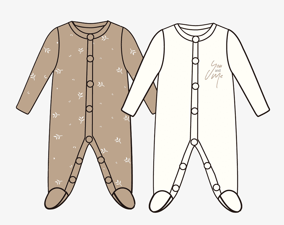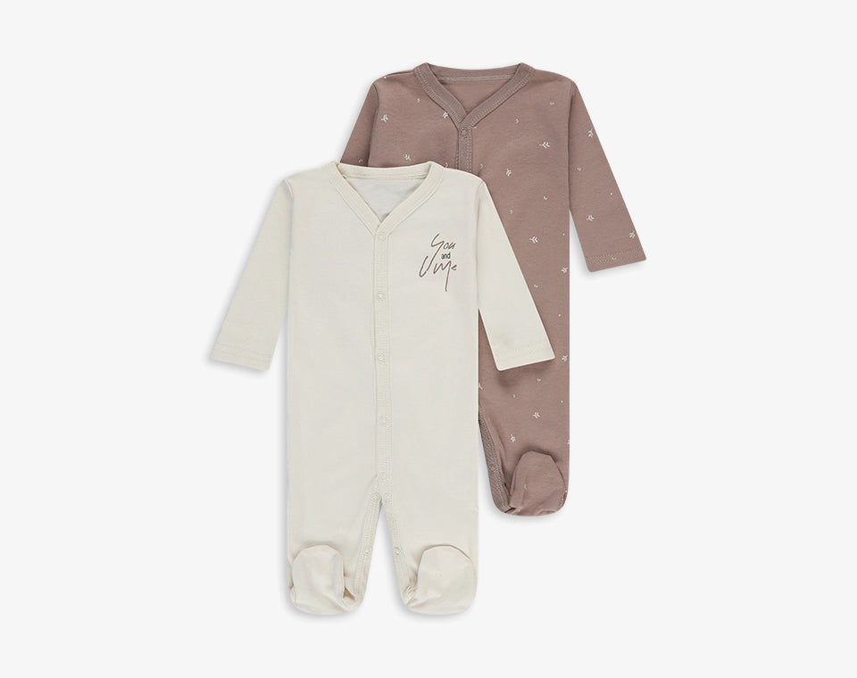 זוג אוברולים שרוול ארוך- שמנת/ חום הדפס עלים