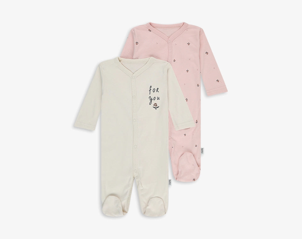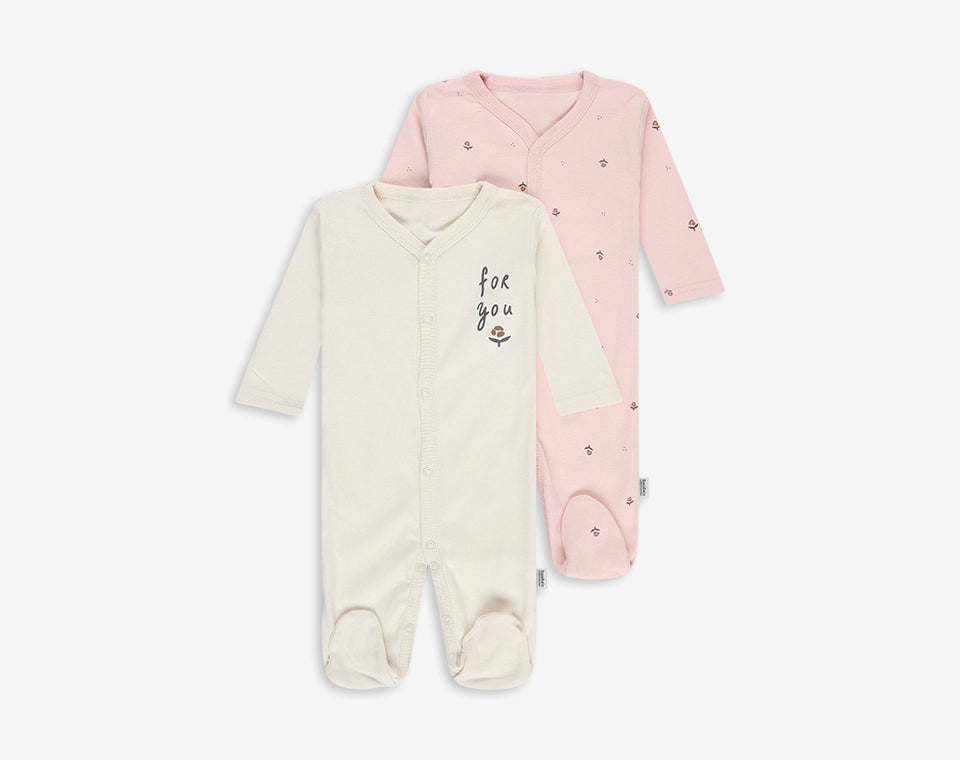 זוג אוברולים שרוול ארוך- שמנת/ ורוד הדפס פרחוני
