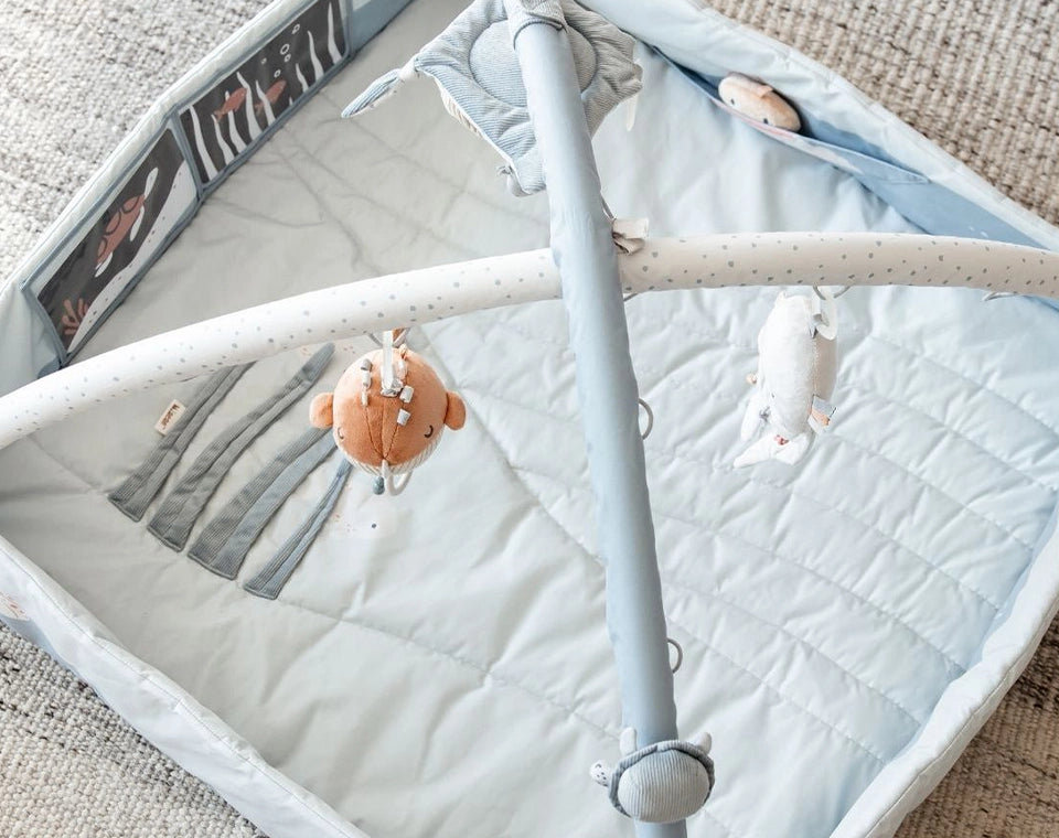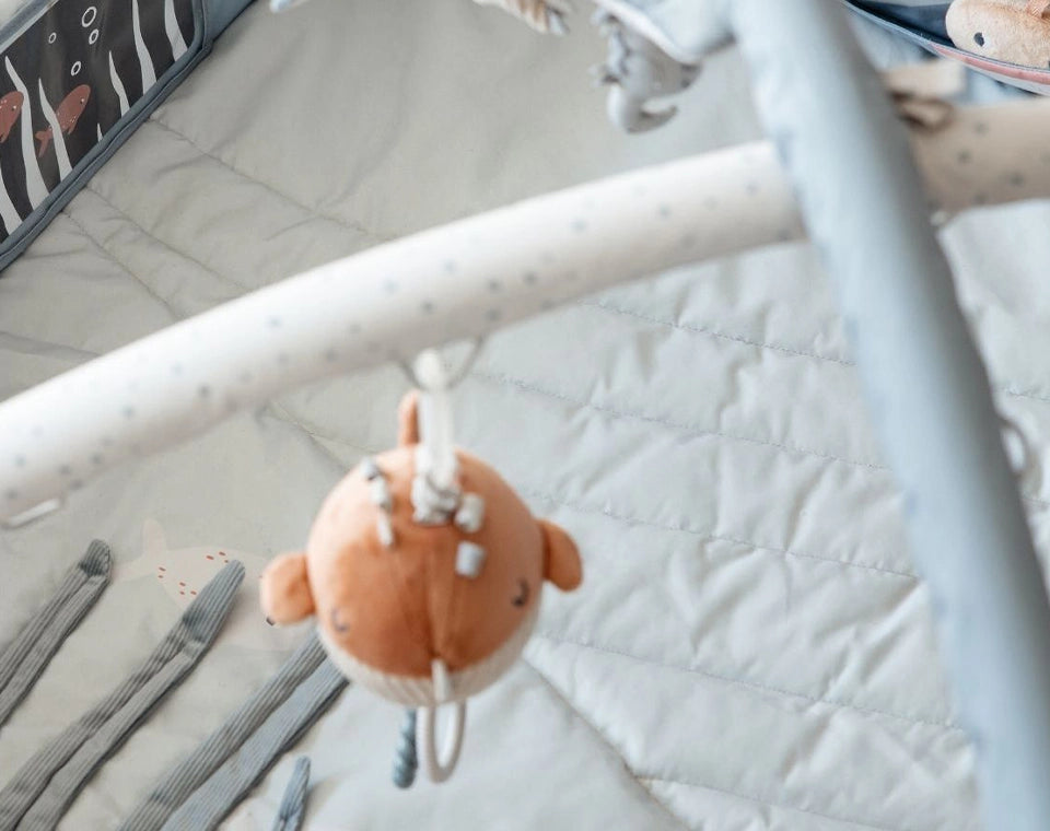 כן, אפשר להניח את התינוק על הבטן ולהציב צעצועים נמוכים מלפניו.
