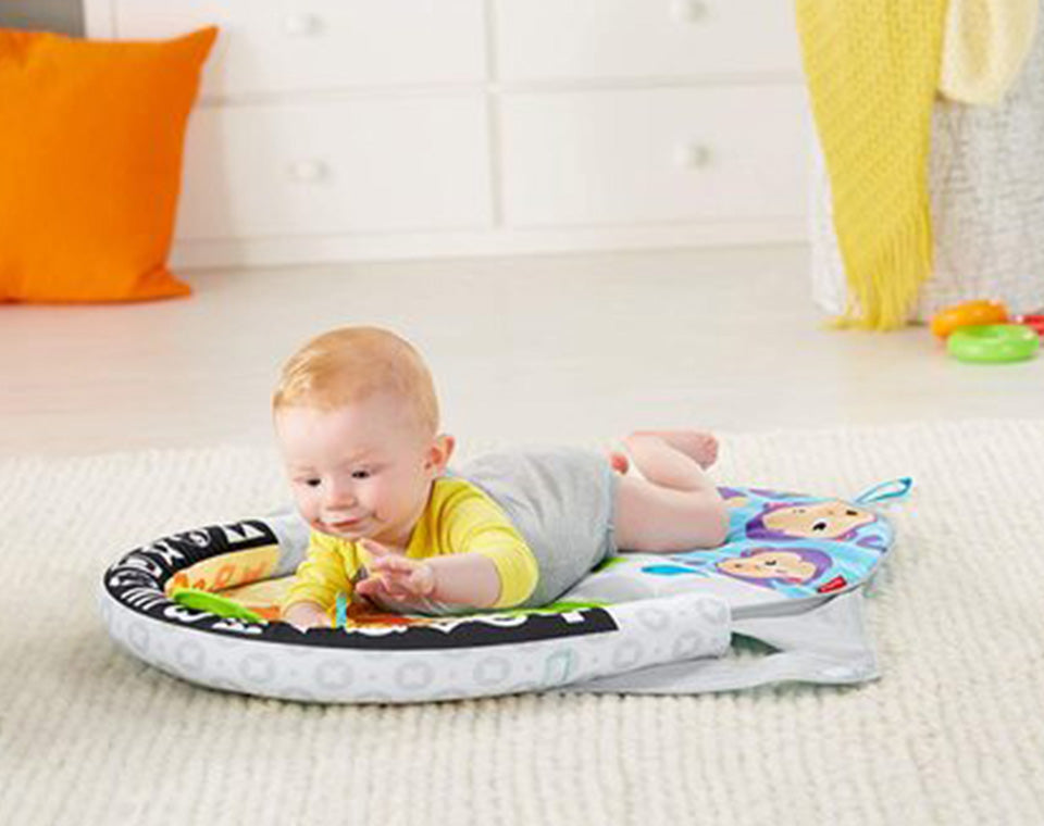 כן, אפשר להניח את התינוק על הבטן ולהציב צעצועים נמוכים מלפניו.