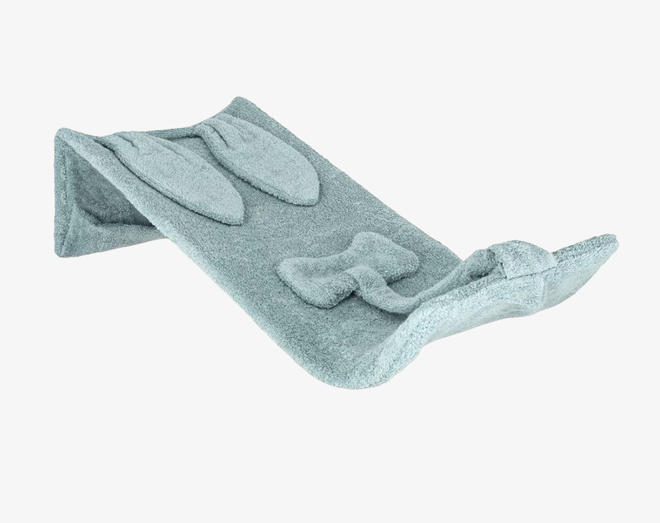 מושב תמיכה מעוצב לאמבטיה מבד מגבת רך ונעים, לתחושת נוחות וביטחון.