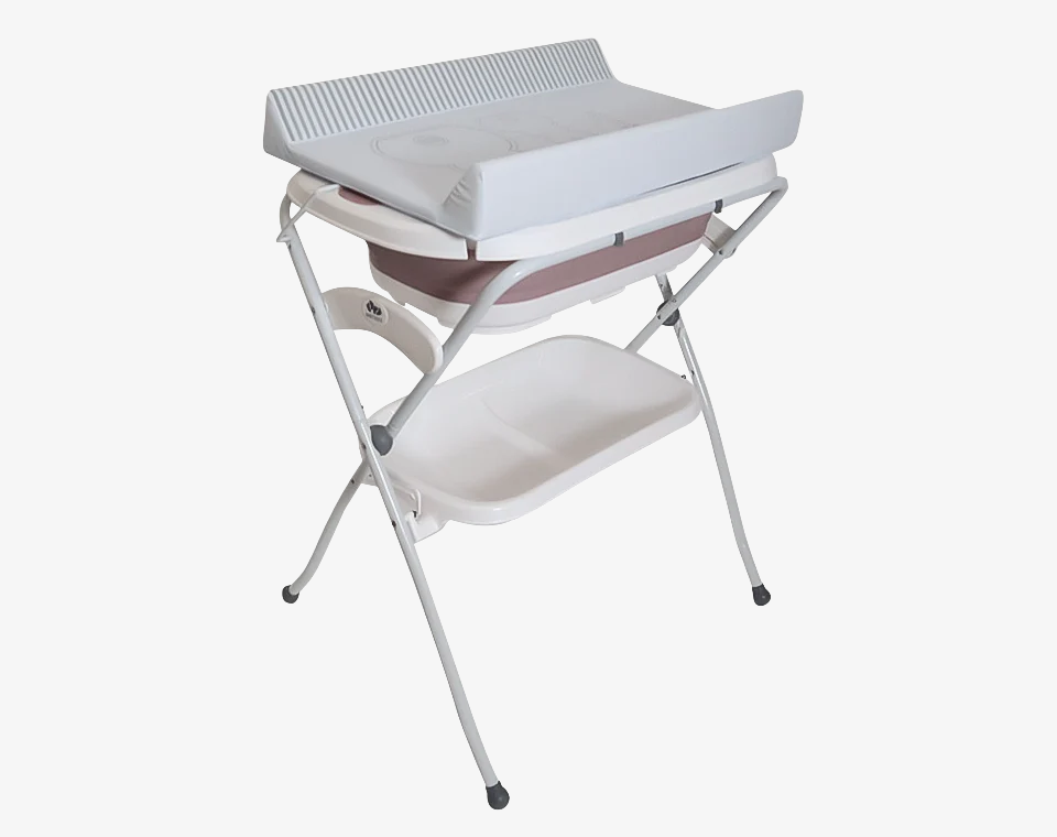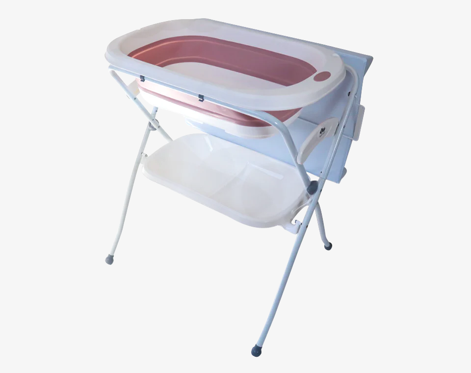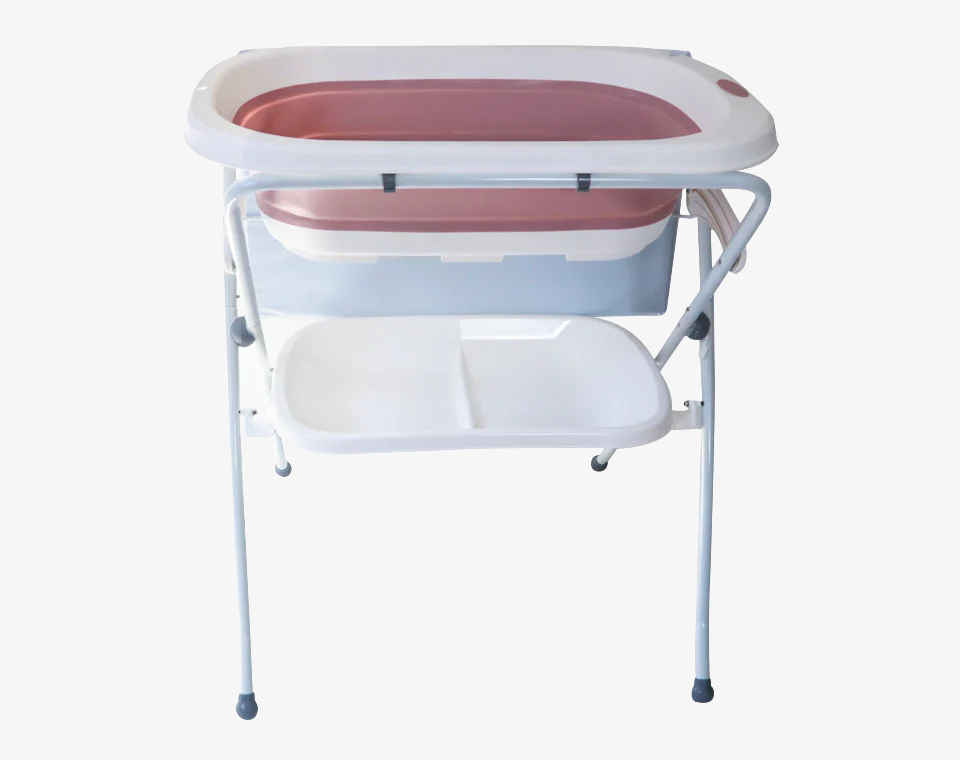 אמבטיה מתקפלת לתינוק ורוד + מעמד + משטח החתלה
