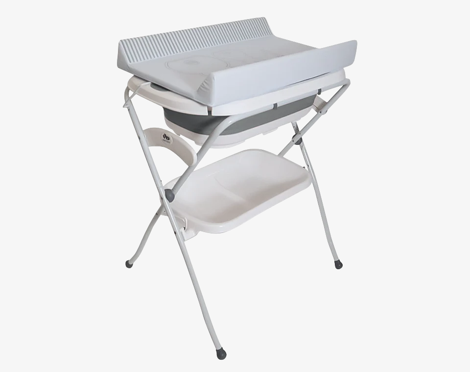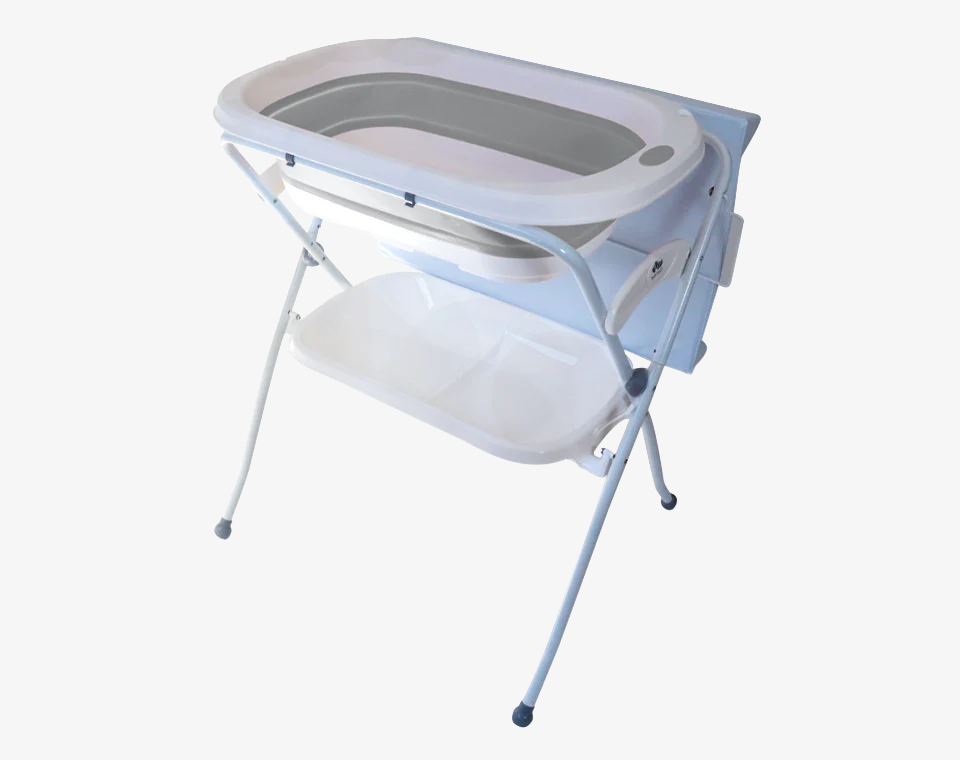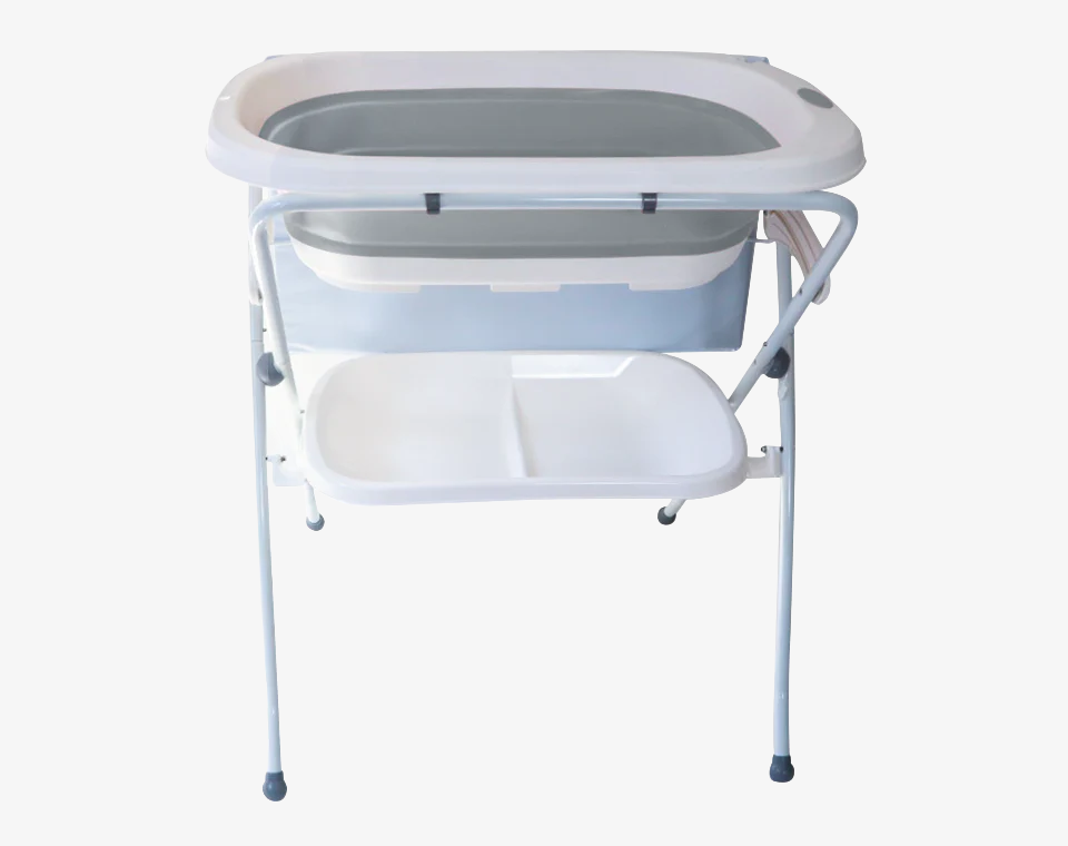 אמבטיה מתקפלת לתינוק אפור+ מעמד + משטח החתלה