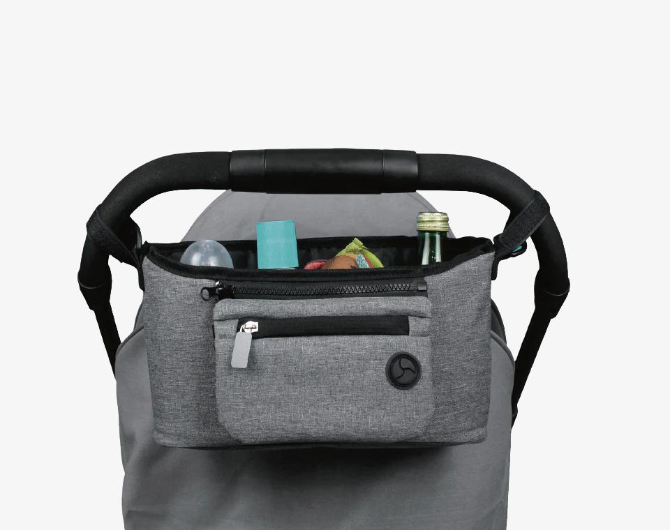 ארגונית לרכב בצבע אפור של BABY TOUCH , כיס גדול ומחזיקי בקבוקים ההפוכים את הארגונית לפתרון מושלם לנשיאת אביזרי התינוק