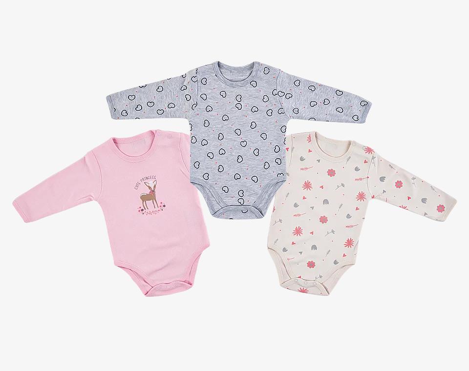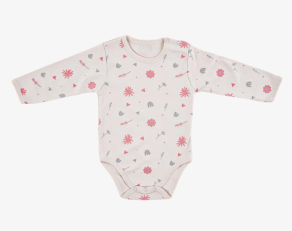 שלישיית בגדי גוף שרוול ארוך פרח 3-6M