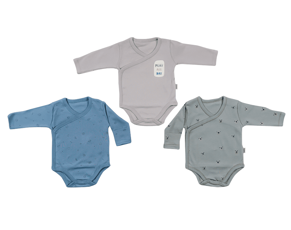 שלישיית בגדי גוף מעטפת- דובי זית- אבן- שמיים כחולים