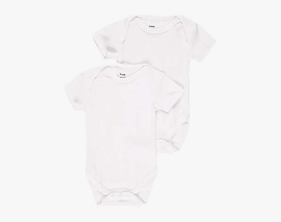 קולקציית הביגוד הראשוני של מיננה מעוצבת ברכות ובנוחות לשימוש יומיומי. זוג בגדי גוף קצרים לבנים מבד כותנה.