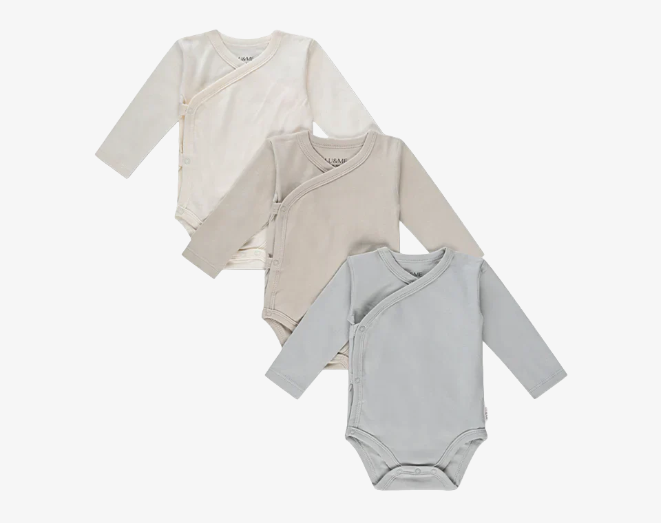 שלישיית בגדי גוף מעטפת עשויים 100% כותנה.