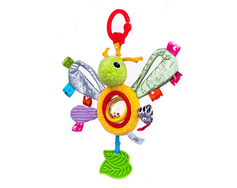 צעצוע תלייה , לפרפר לולו יש כנפיים צבעוניות מעוטרות בתגים,בנוסף, כל אחד מהכנפיים עשוי מחומר אחר ושונה בצבעו על מנת לעורר את תחושת המגע של התינוק