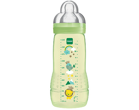 בקבוק תינוק 330 מ"ל עם פטמה מס' 3 (זרימה מהירה) בצבע ירוק.