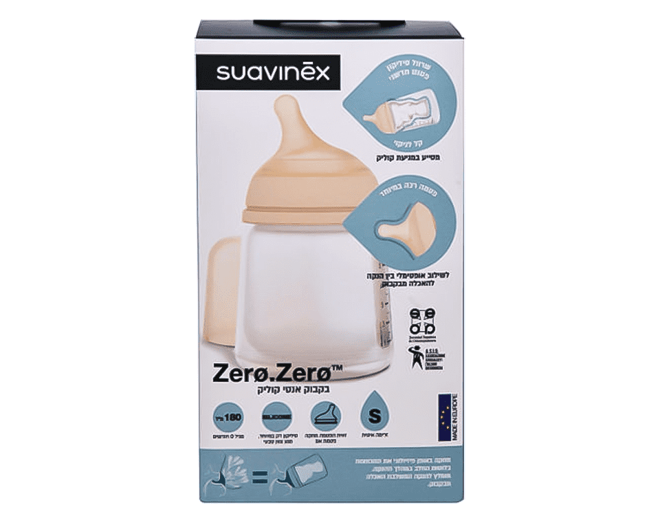 Suavinex מותג מוביל המתמחה בפיתוח עיצוב וייצור מוצרי האכלה לתינוקות פיתח לאחר שנים רבות של מחקר בקבוק חדשני המעניק פתרון מושלם לבעיית הקוליק/גזים ובלבול הפטמות הרווחת אצל רוב התינוקות. הבקבוק ZERO ZERO הוא היחיד בתחום עם פטמה אינטראקטיבית המעניקה יניקה בריאה לתינוק.