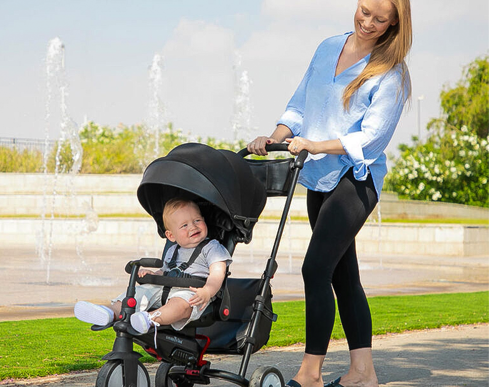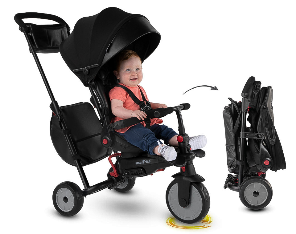 STR™ 7 הוא תלת אופן סמארט טרייק מתקפל 7 ב-1 עם תו תקן טיולון. הוא מעוצב כך שיגדל עם התינוק שלכם ב-6 שלבים לאורך גילאי 10-36 חודשים, והוא מתקפל באופן מלא וקומפקטי כך שממש קל לקחת אותו לטיולים