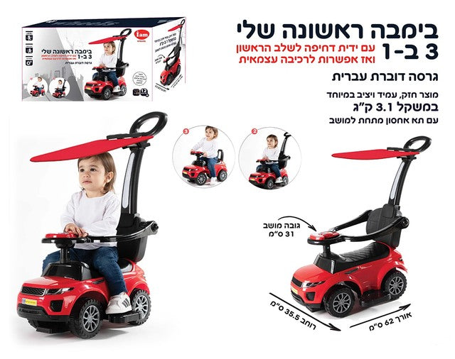 בימבה עם ידית דחיפה לשלב הראשון עם אפשרות לרכיבה עצמאית