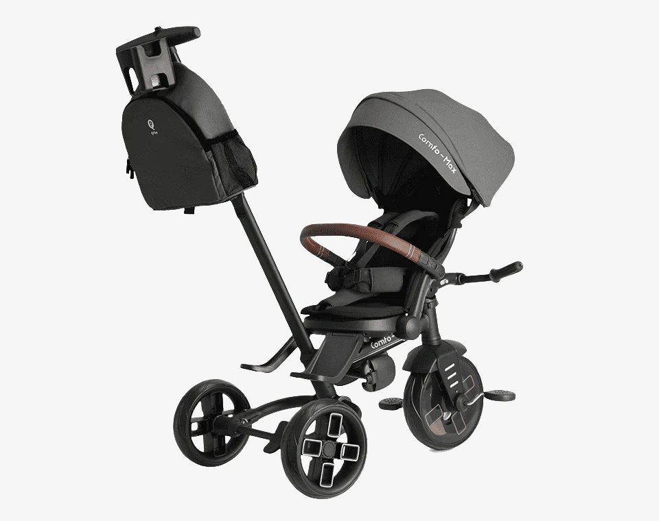 בלעדי ברשת מוצצים- Comfo Max תלת אופן 8 ב-1 בעל משענת גב נוחה ומעוצבת, גלגלים המספקים נוחות מרבית לילדים בזמן רכיבה ומנוחה.