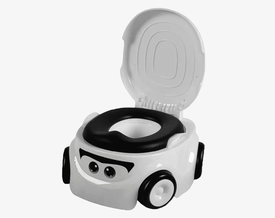 סיר לילה בצורת מכונית בצבע שחור לבן, הסיר שיעביר את הגמילה של הקטנטנים מטיטולים בהנאה מקסימלית