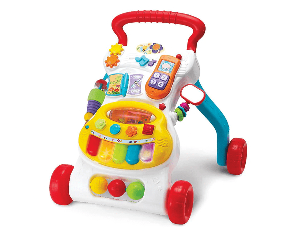 הליכון מוזיקלי מהנה המסייע לפעוטות לעמוד וללכת. כולל תכונות אינראקטיביות כגון: קלידי פסנתר, טלפון, כפתורים, ורעשן. ההליכון גם מנגן מנגינות וקולות של חיות.