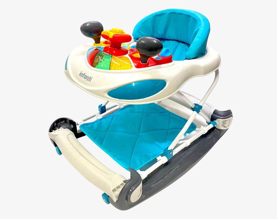 הליכון ישיבה, התינוק בתוך כיסא. דחיפה – התינוק הולך מאחור ודוחף, מה שתורם יותר להתפתחות מוטורית תקינה.