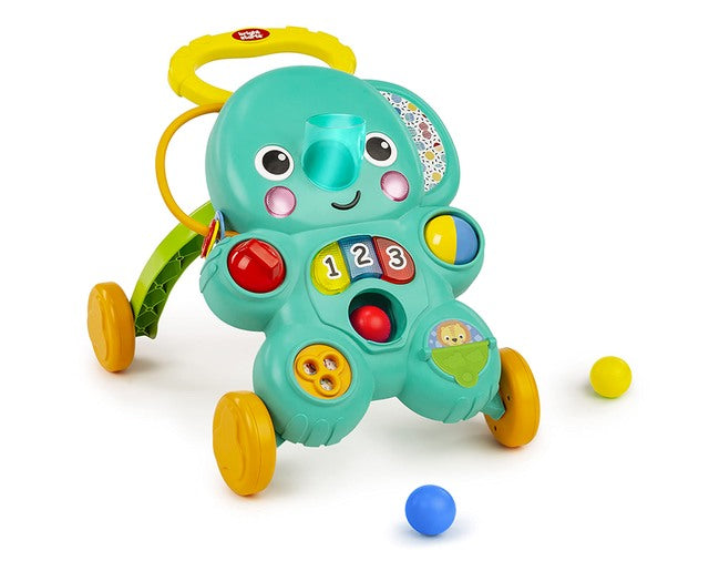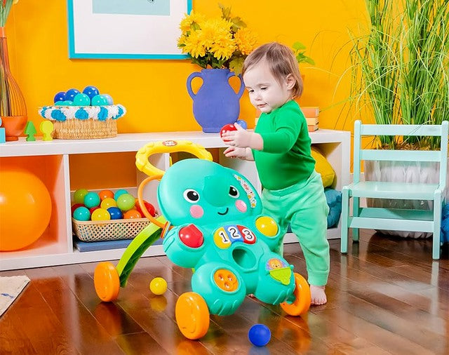 הליכון ישיבה, התינוק בתוך כיסא. דחיפה – התינוק הולך מאחור ודוחף, מה שתורם יותר להתפתחות מוטורית תקינה.