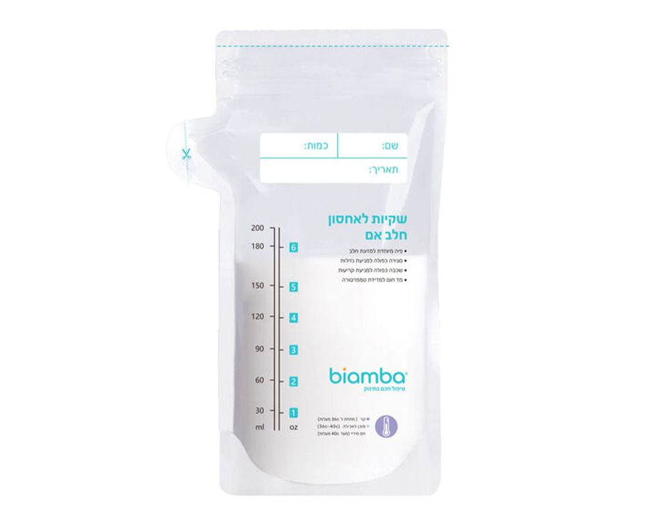 שקיות האחסון המהפכניות של ביאמבה מאפשרות לך להנות מכל כך הרבה יתרונות שיהפכו את חווית ההנקה ואחסון החלב שלך לפשוטים מאי פעם: השכבה הכפולה של השקיות אשר הופכת את השקיות לחזקות וסטריליות, פיה ייחודית המאפשרת מזיגה קלה ונוחה, מד חום חדשני אשר מציג באמצעות צבעים את מצב הטמפרטורה של החלב (חם מדי, קר מדי או בחום המדויק לחלב אם) בעיצוב חדשני וחכם.