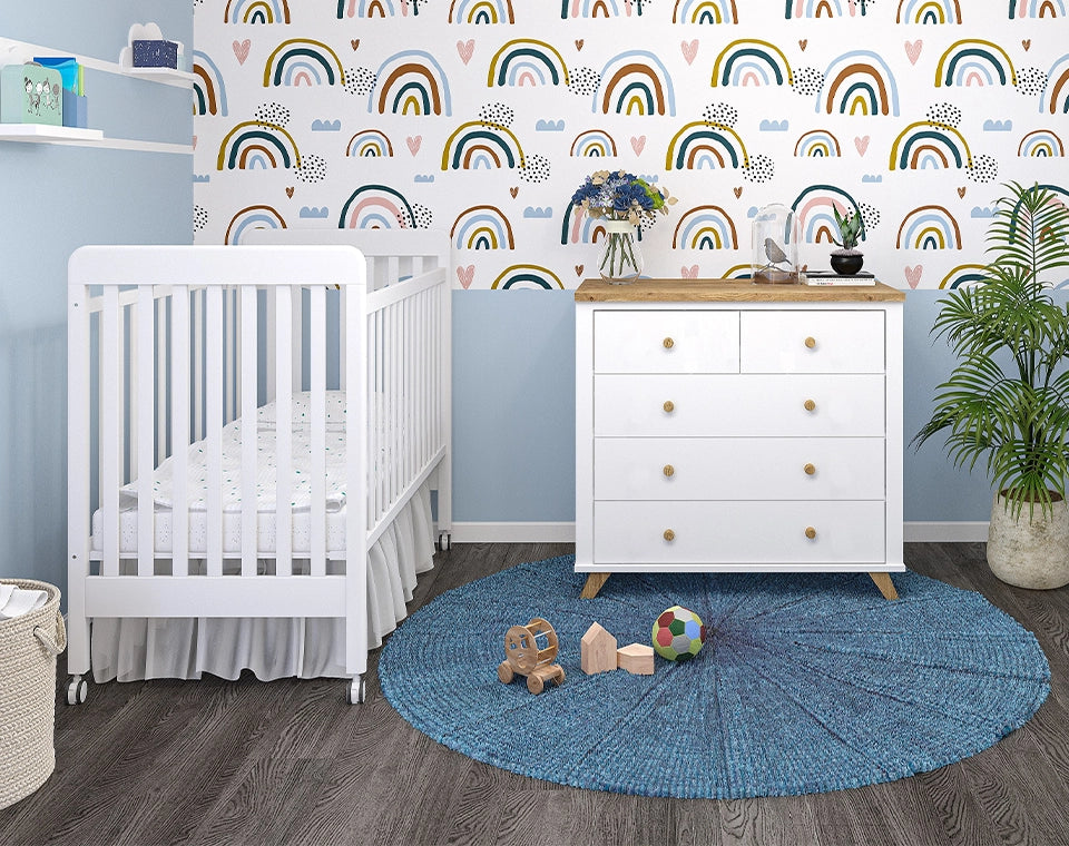 חדר תינוקות מדגם "פנדה" מורכב ממיטת תינוק דגם- גוליבר בצבע לבן המאופיינת בעיצוב קלאסי עם קווים אובליים. ושידה מדגם פנדה לבנה ובעלת ידיות עץ אלון עגולות כוללת מגירה עליונה המתחלקת לשתיים ועיצוב כפרי.