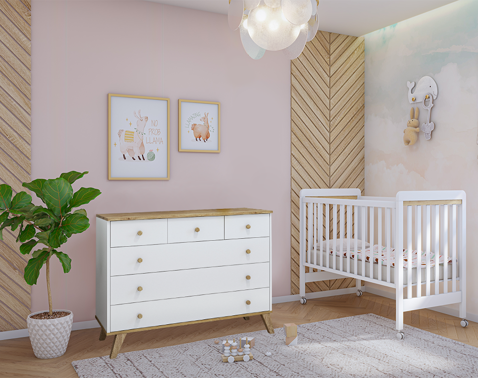 חדר תינוקות "לונדון" מבית טל רהיטי תינוקות, מגיל מיטת תינוק מדגם "קליפורניה" ושידת אחסנה מדגם "פארק"