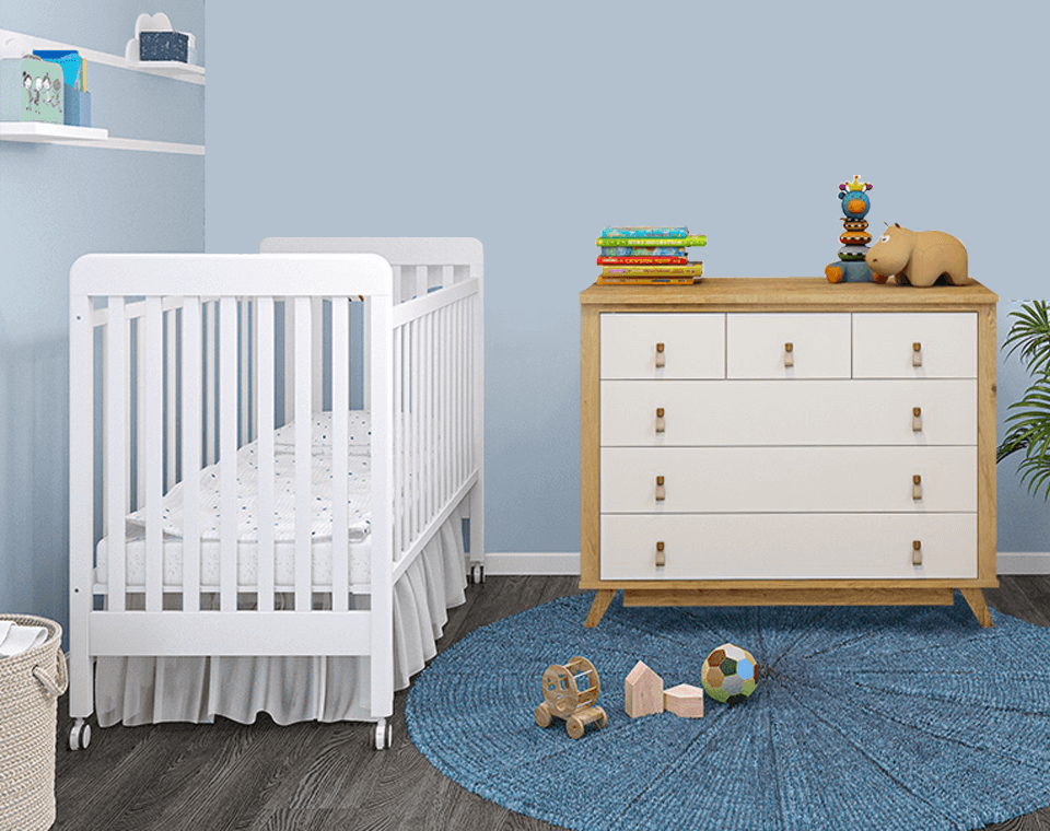 חדר תינוקות מבית טל רהיטי תינוקות, כולל מיטת תינוק מדגם "גוליבר" ושידת אחסנה מדגם "בוסטון"