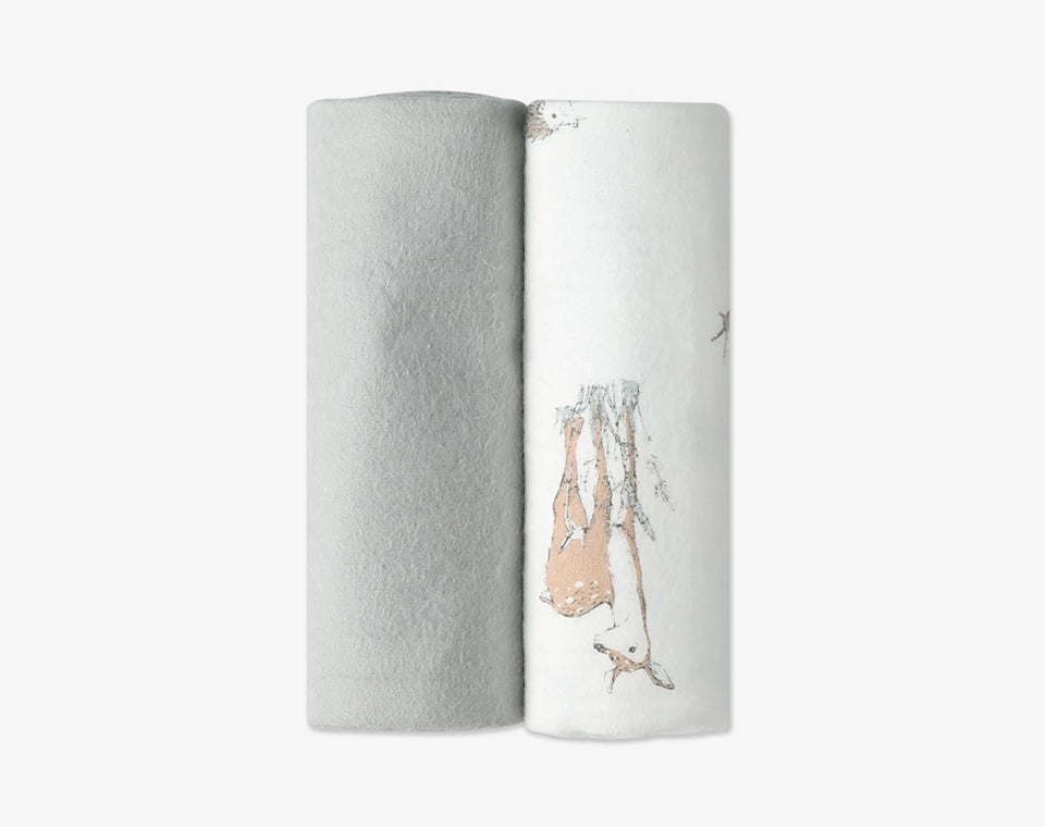 זוג חיתולי פלנל מודפסים עשויים 100% כותנה מוברשת איכותית, רכה ונעימה מתאימים למגוון שימושים.