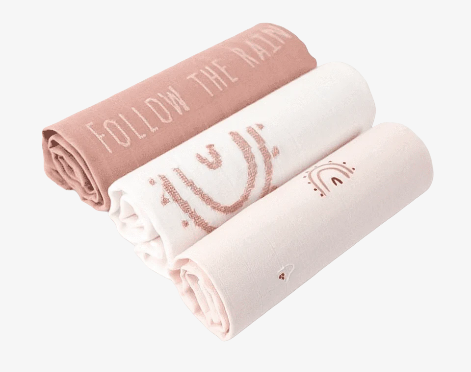 שלישיית חיתולי טטרה רקומים ורוד בהיר OS