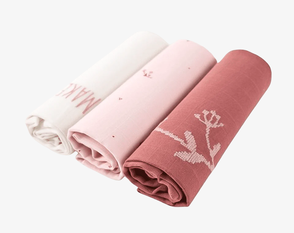 שלישיית חיתולי טטרה רקומים ורוד עתיק OS