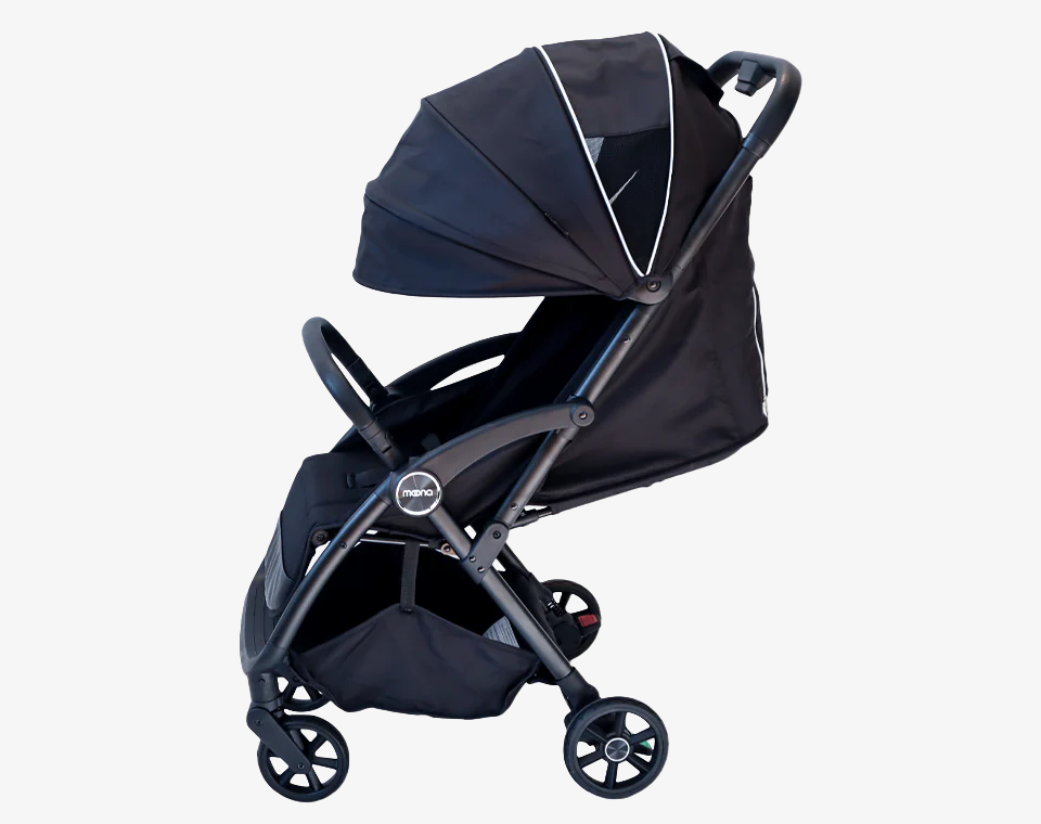 טיולון דגם Iggy מבית MOONA בצבע שחור עם שלד שחור וידיות עור בצבע שחור