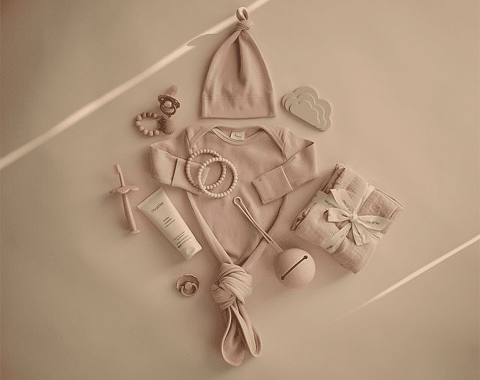 כובע בונט מבד ריב מבית Mushie עשוי מכותנה אורגנית, מכסה באופן מלא את האוזניים ומעניק חום ומקסימום נוחות