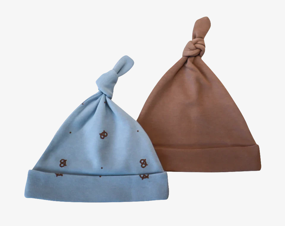 זוג כובעים מיוחדים חום+ תכלת בייגלה