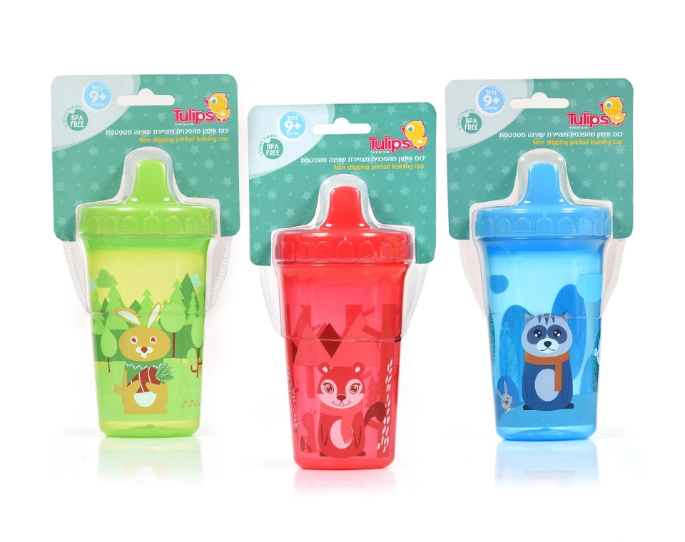 כוס אימון מהפכנית שאינה מטפטפת עם פיה רכה, אשר מתאימה במיוחד לאימון התינוק לשתיית מים (יש לציין בהערות צבע)