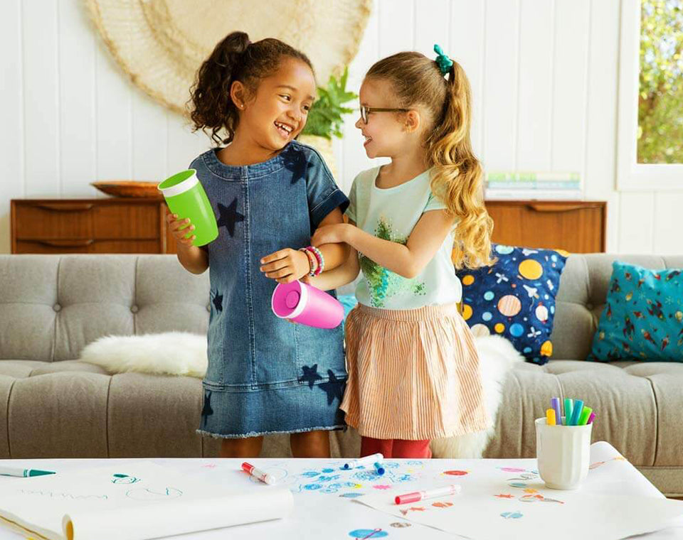 כוס הפלא 360° המהפכנית של מנצ’קין מאפשרת לילדך לשתות באופן טבעי מכל מקום על גבי שפת הכוס וזאת מבלי שהנוזל בכוס יישפך