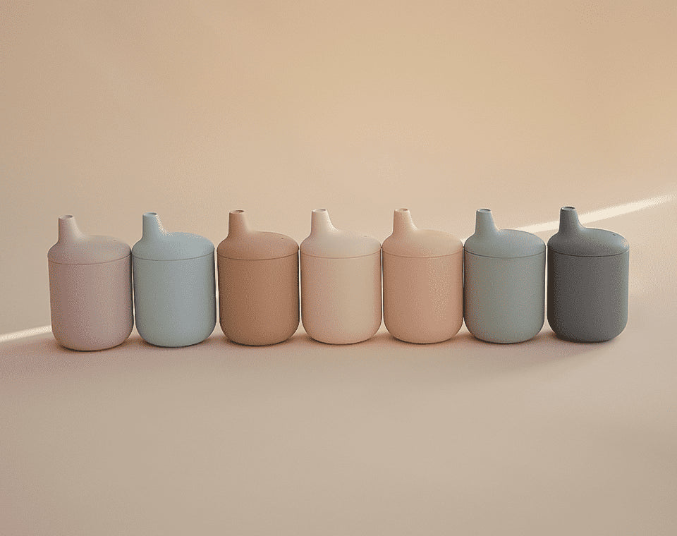 כוס השתייה של Mushie מותאמת לידיים הקטנטנות של ילדכם ומגיעה עם מכסה סיליקון נשלף ואטום בפני נזילות.