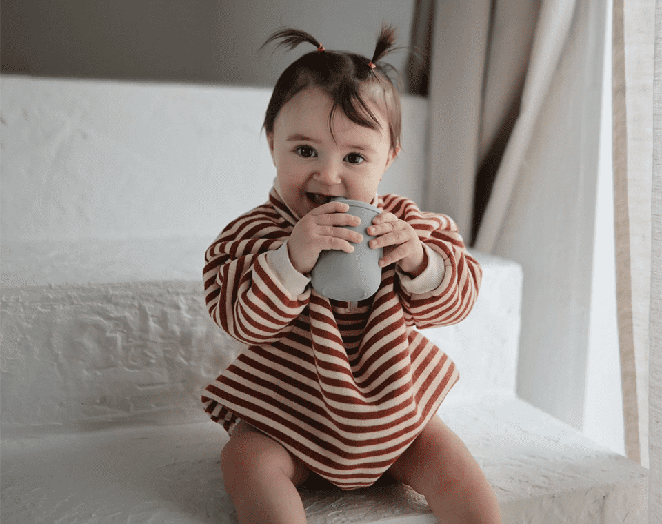 כוס השתייה של Mushie מותאמת לידיים הקטנטנות של ילדכם ומגיעה עם מכסה סיליקון נשלף ואטום בפני נזילות.