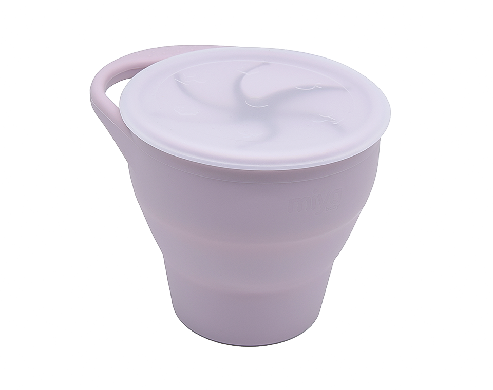 כוס חטיפים מתקפלת עם מכסה סיליקון ורוד לבנדר