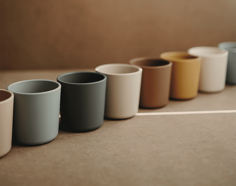 כוסות השתייה של מושי עשויות פלסטיק פוליפרופילן ללא BPA, הכוסות מגיעות במגוון צבעים רכים ועיצוב נקי ואלגנטי.