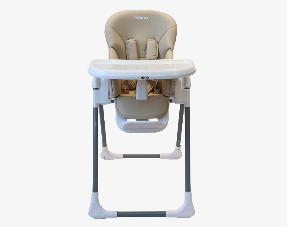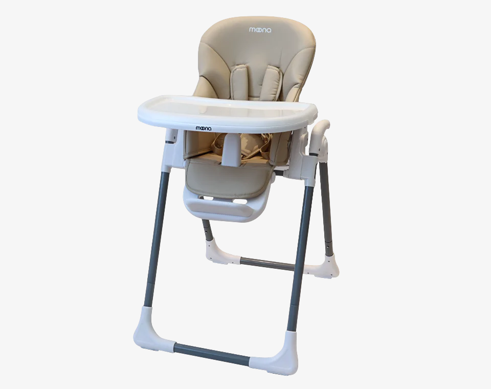 כסא אוכל מתקפל דגם YOKO מבית Moona, בעל ריפוד דמוי עור המעניק לכסא מראה יוקרתי.