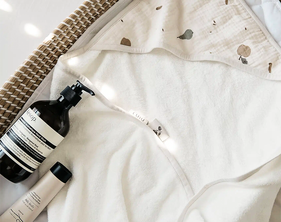 מגבת רכה ונעימה לתינוק עם כובע, צידה העליון עשוי מבד טטרה וצידה הפנימי עשוי מבמבוק.