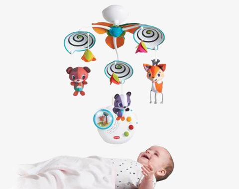 - קוגניציה - הדמויות החמודות של המובייל מופיעות ונעלמות מעל ראשו של התינוק. זה יוצר מעין משחק הצצה שעוזר לתינוק להבין את הרעיון של קביעות אובייקט. כשהתינוק גדל ומתחיל ללחוץ על תיבת המוזיקה באופן עצמאי, הוא לומד על נפלאות הסיבה (לחיצה על כפתור) ותוצאה (מוזיקה ואורות)